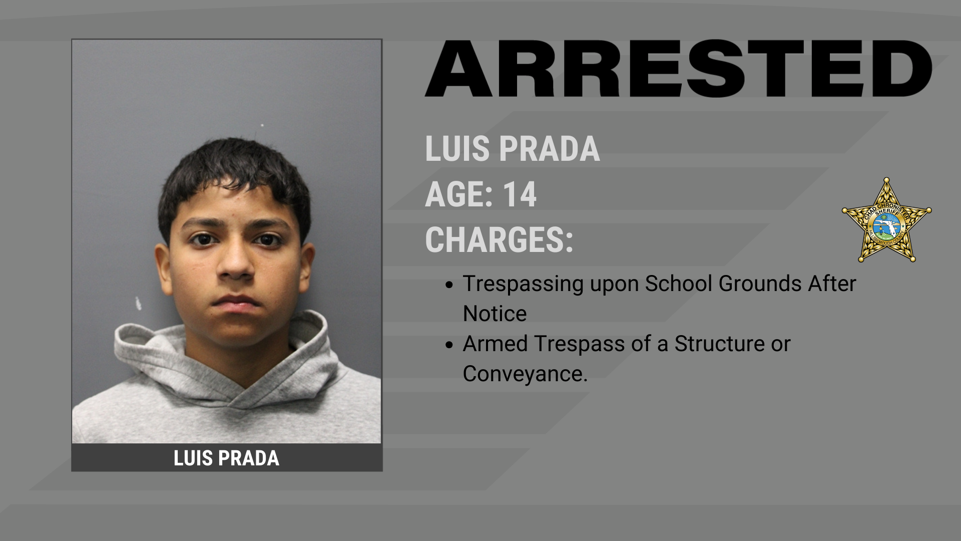 Detectives learned earlier that morning, while on school property, Luis Prada, 14, displayed what a witness believed to be a firearm.